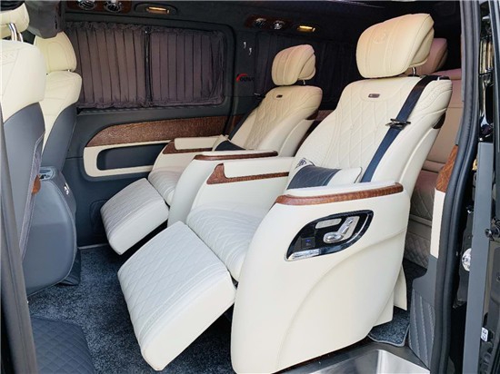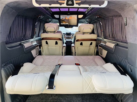 奔驰V250改装高顶半隔断外观采用车身加高200mm,长宽高:5370mm--1928mm--2080mm,轴距3430mm,2.0T排量,211马力,功率155k/w, 扭矩350N/m,轮胎规格:245/50/R18,前置后驱,360度全景影像。如有对动力不满意的客户,可进行OCT动力升级,由原来的211HP升级为260HP, 由350NM升级为420NM, 由155KW升级为192KW。以下图片为V250改装高顶七座半隔断迈巴赫VS900内饰实拍照片。