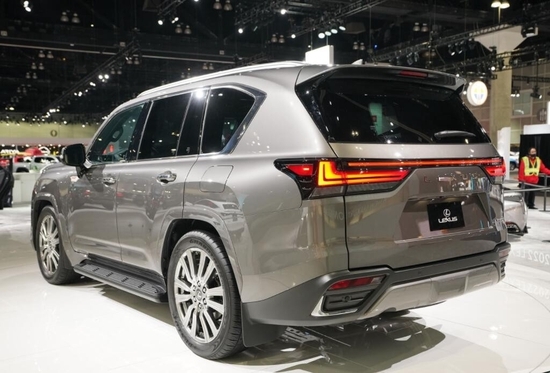 雷克萨斯LX (配置|询价)600采用了前脸造型变化较大,大面积镀铬进气格栅采用横状镀铬点缀,占据了前脸差不多四分之三的位置,两侧的大灯组和下方的雾灯区和进气格栅相连接,细节处理上十分精致。