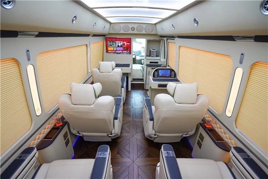 改装是为了更加美观更加舒适或者更能彰显一种尊贵的身份。丰田考斯特在内饰的改装上更加注重尊贵的衬托,高档的豪华座椅暂且不说,自动调节的百叶窗帘也无需再提,就拿车载的影音系统来说,我们完全可以依靠自己的需要设计符合我们需要的车载影音系统,高清的显示屏,专用的麦克以及高级的扬声器设备,随时随地带给乘车人员一种舒适的享受。