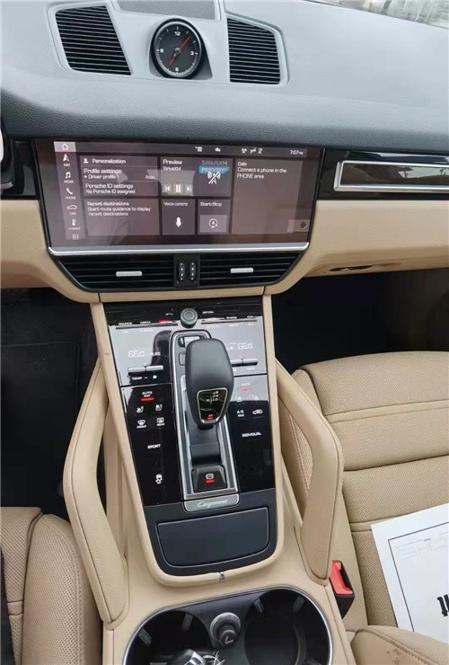 保时捷卡宴3.0T在新一代Cayenne中,使用了与全新Panamera (配置|询价)类似的新座舱。12.3英寸全高清触控屏可直观地控制各种数字功能,包括语音控制功能。下方按键整齐的排列在如同智能手机玻璃触控面板的表台上,操作时会发出声音以及震动反馈。