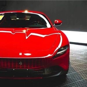 法拉利罗马流畅圆润的车身线条不再如以往般强调锐利的感觉,大面积的风洞都不见踪影。横向式大灯将灯带切割为上下两部分,和车身同色的渐变网格状。