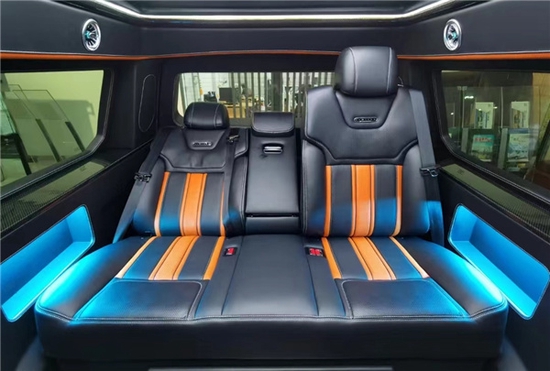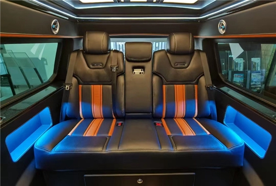 独立排布带电动加热按摩功用的第二排老板座椅和超大空间带顶灯独立空调出风口的第三排沙发。难得的是第三排座椅还能前后移动放倒!当不需求乘坐7人的时分,放下第三排即可恢复皮卡本身超大载货的空间优势。后排由于非承载式车身的关系会比前一二排略高,但得益于F150福特勇猛者的后车窗和全景天窗,并不显得局促。