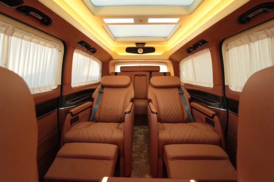 奔驰全新V260L第二排座椅可360度旋转,安装桌板后俨然变身为一个移动会客室,空间私密。第三排座椅可放平,配合第二排座椅旋转,俨然成为一张约4尺的大床,在您旅途中可适当的休息;可谓是人性化十足。