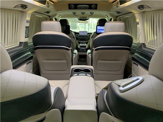 奔驰V260L车型前后舱为半隔断设计,隔断处装载了20寸液晶曲面电视,奔驰V260L全车采用高档柚木地板,胶囊式咖啡机,蓝光DVD,美固车载紧缩机冰箱等文娱装配,让您在乘坐奔驰V260L出行时可以恬静周全的享受车内韶光。
