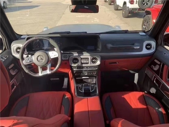 21款奔驰G63精选皮革搭配多疤胡桃木木饰的装饰风格彰显了顶级经典越野车的风采。奔驰G63AMG进口SUV豪车内饰设计更具时代感也更加豪华。新款G63AMG独立的液晶显示屏如同奔驰A等新车型一样,被立在中控台上方,这样更加方便阅读信息。大多数奔驰的电子系统都出现在这个全新的豪华内厢里,包括COMAND和HD卫星导航系统。中控台多处均采用碳纤维材料覆盖,带彩色TFT显示屏的AMG。