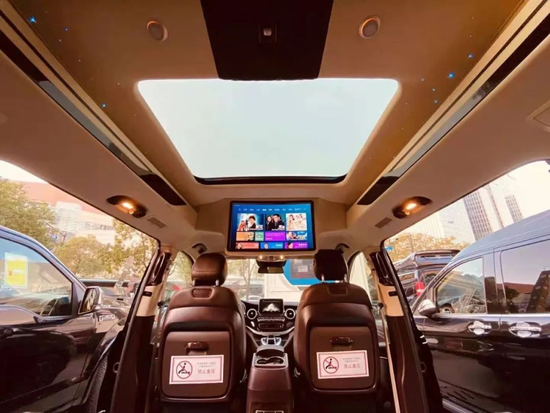 功能配置放面,新款奔驰V级驾驶舱后上方搭载了带小米盒子的LED高清网络电视,加之:车载WIFI、INFINITY音响、折叠式小桌板、隐藏式酒柜、带空气净化功能的全车智能空调等高端设施“辅佐”,位于舱内的体验者无时无刻都能感受到移动商务办公、休闲娱乐带来的无拘惬意!