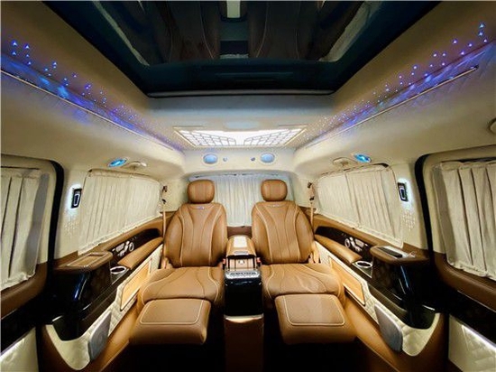 全新梅赛德斯-奔驰v260改装的高顶隔板可隐藏六个座位,乘客舱配有双面电动滑动门,可通过遥控智能钥匙进行远程控制,或通过B-内的黑色按钮将其关闭支柱。为了最大程度地增加进出车厢的乘客的便利性,滑动门可以保持在任何位置,并且贴心的防夹保护功能可以避免可能发生的事故。梅赛德斯-奔驰新V级尾翼的整体设计为方形,后挡风玻璃和牌照框上使用了一些斜线,以增强活力。奔驰V260L改装座椅人体工程学设计,具有一键式扩展和记忆功能,并配备加热,通风,气动按摩,一键式可伸缩腿部休息功能,带来一流的舒适体验和机智的空间,私人起居室后座舱体验,隐蔽空间优化了独立座椅。第二排座椅可以通过一个按钮在酒吧和独立座椅之间进行切换,从而充分释放后座舱空间并为客厅带来舒适感。