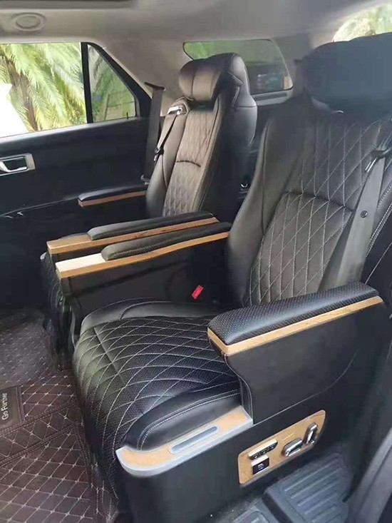 除了海绵和骨架上的合理设计和皮质上的用料外真正影响舒适度的还是因为航空座椅的可调节性,座椅带有六项调节功能,“电动腿托2项、前后移动2项、靠背调节2项”加起来六项,有调节性能的座椅才符合更多人的坐姿从而达到更高的要求,主要还是灵活为主,原车中排座椅比较死板,所以舒适度不高也是这个原因。