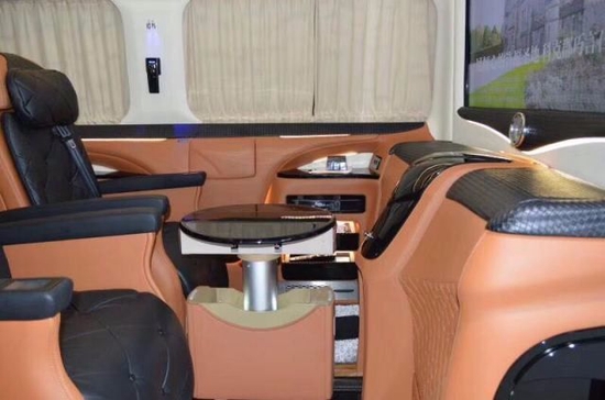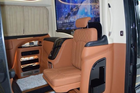 奔驰斯宾特隐藏九座,多功能精致的吧台,大容量的恒温电加热水壶,酒柜和水晶酒杯,DVD及美国顶级bose音响,一键式可升降40寸液晶电视,私密空间随您掌控。豪华深色内饰,高光泽实木饰板,尽力打造奔驰房车的低调与简单之美。奔驰斯宾特隐藏座椅,电动 收展隐藏商务桌板,功能俱全。尽力打造奔驰房车的低调与简单之美。