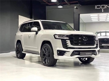 22款全新丰田酷路泽LC300外观方面:改动还是较大的,保留之前的大尺寸进气格栅,横向分布的镀铬条提升了前脸的硬汉气息,车两侧使用了倒t字形大灯,分体式灯组的设计,但是这造型,个人感觉还是有些圆润!车身侧面使用了大量平直的线条,腰线也设计成了较为保守和平缓的形式。尾部的造型看起来相当中庸,并无太多亮点,排气管采用了隐藏式设计。