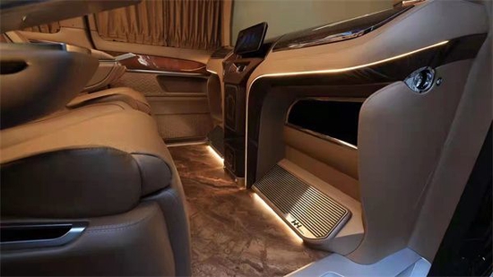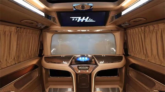 中排两张独立的航空座椅,加热、通风、按摩、腿托伸展、头枕以及前后调节等,功能强大,舒适性足够!而且所有的功能调节,在扶手处的液晶屏就可以控制,相当便捷。卡漠兹众神款旨在将整个车厢设计成一间奢华,体验非凡的多功能起居空间,智能影音、电动窗帘、可调节氛围灯等豪华配置均无缺位。并且这款车子在颜色上选的就是一眼看上去非常兼具奢华感的色彩。整车装饰品以及顶部都是单独开幕制作,在细节和工艺上最大程度的做到精益求精,同时这款众神也是所有卡莫兹所有车型中高端产品,定位就是奢华。