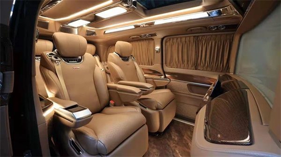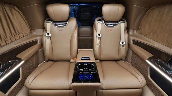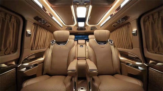 真个内饰商务舱部分可以说的上是超级豪华系列,首先从颜色来看,香槟金凸显出整车的气质与非凡,引入眼帘就是大气高端有档次的感觉。动力方面:全新奔驰威霆轴距达到了3430mm,动力搭载M274系列也是奔驰最新一代的2.0T涡轮增压汽油发动机,其最大输出功率为156kW,与之匹配的是九速手自一体变数系统,配合直接选档,让换挡灵敏顺畅,动力输出随心所欲,轻松应对各种路况。且本身所带有的四轮空气悬挂系统,更可以让乘坐者得到最佳的舒适度。