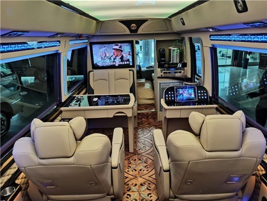 丰田考斯特12座改装商务车改装从内饰上来说,在座椅的设置上,12座改装商务车座椅的设置上采取了3221的乘车人员的座位布局,后排连着的三个座椅可以调整,使其成为一张在旅途劳累时需要的一张舒服的床。前排独立的真皮座椅,宽敞又舒适,最值得称赞的还不止这些,坐上安装上电动的调节装置,可以根据自己的需要调整座椅的靠背角度以及前后的距离,更值得一说的是丰田考斯特改装安装航空座椅首长席,可360度旋转,如此舒适高端,正是我们高贵身份的最佳衬托。