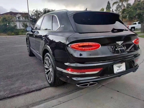 宾利添越 (配置|询价)车尾部分,新款添越使用了宾利最新家族式的尾部设计,整体看上去十分简洁、椭圆形尾灯犹如两颗珠宝,十分璀璨。双边共四出的排气,标志着新款宾利添越依然有着十分强悍的性能。订车微信:18649226789 阿亮(同微信)
