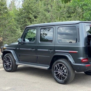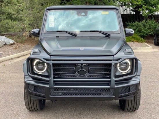 21款奔驰G550是一部纯粹的全地形越野车,粗犷的外观,标志性的三肋镀铬格栅,大大的奔驰车标非常醒目,硬朗笔直的车身线条完全是硬派越野的风格,车头圆形前大灯设计很复古,平直的线条贯穿全身。