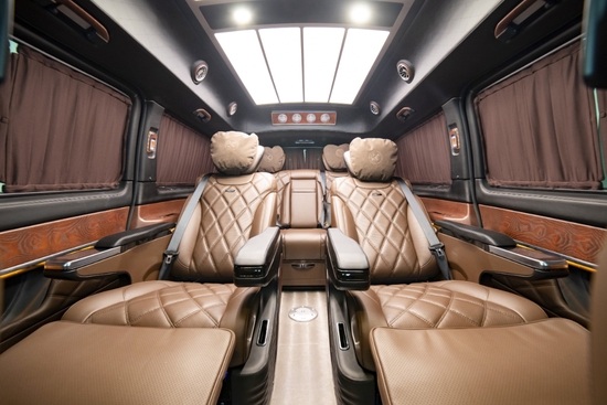 奔驰VST880尺寸上达到了5400/1928/2080mm,采用流线高顶设计,后舱四周都采用隐私玻璃设计,而且都增加了镀铬边框