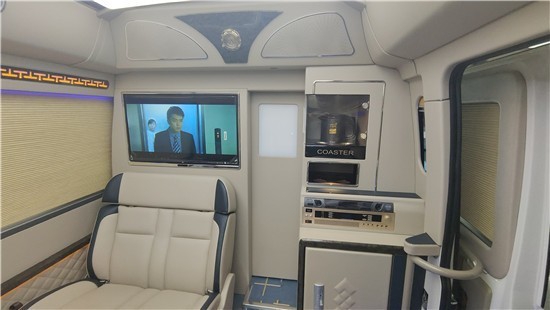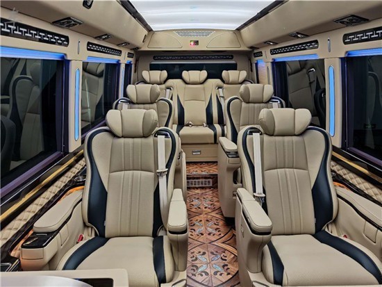 丰田考斯特12座改装商务车改装从内饰上来说,在座椅的设置上,12座改装商务车座椅的设置上采取了3221的乘车人员的座位布局,后排连着的三个座椅可以调整,使其成为一张在旅途劳累时需要的一张舒服的床。前排独立的真皮座椅,宽敞又舒适,最值得称赞的还不止这些,坐上安装上电动的调节装置,可以根据自己的需要调整座椅的靠背角度以及前后的距离,更值得一说的是丰田考斯特改装安装航空座椅首长席,可360度旋转,如此舒适高端,正是我们高贵身份的最佳衬托。