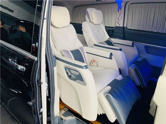 迈巴赫VS980商务车内饰的整体设计是婉约柔和的,整个采用米色为主色调,更显淡雅清净内饰也是定制升级过的,显得高端大气。定制风格采用经典的元素,宽大的航空椅配上舒适头枕,坐在上面就想美美睡上一觉,座椅带有8向的电动调节,超长的腿拖和按摩功能智能座椅甄选顶级材质,菱格纹理彰显精湛手艺。定制风格采用经典的迈巴赫元素,宽大的航空椅配上迈巴赫舒适头枕。座椅带有8向的电动调节。无疑不是被它更为个性化的定制风格和与原车相比更为舒适的配置所吸引。
