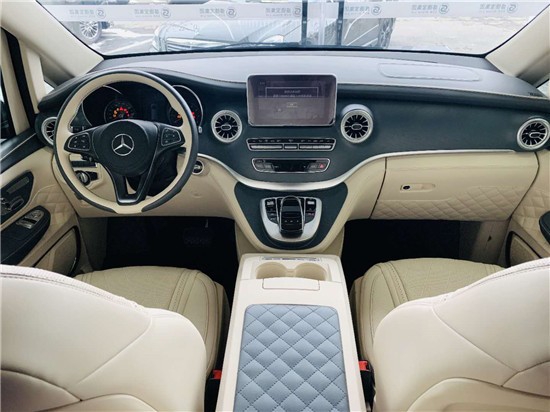 新款的V-Class (配置|询价)继承了奔驰家族全新的设计语言,内饰风格上跟C系很相似,不过完全是全新的设计,不同C系一气呵成的T字型的中控台,V级车因为MPV的缘故,其实驾驶台的空间是相当的充足。同过一条银色的装饰条巧妙的分割了奔驰的Command系统。一般传统的布局方法,此处应该是变速箱档杆的位置,由于V级车搭载了电子选档杆,集成到了方向盘这个位置,这个地方就由Command取代。并且这个位置也相当符合人机工程学设计,手肘可以轻松的搭在后方的扶手上。