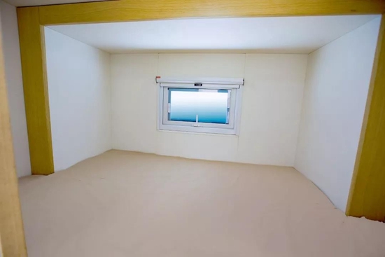 本款二手德国MAN越野房车,右手边即靠近车头的位置是整车的客厅区域,一套经典的双人对坐沙发,中间配置了一张可升降桌板,温馨大方,将桌子降下与沙发可拼成一张2000×1100mm的双人床,并且沙发顶部设有吊柜,且两边设有外推窗,整体设计非常合理。