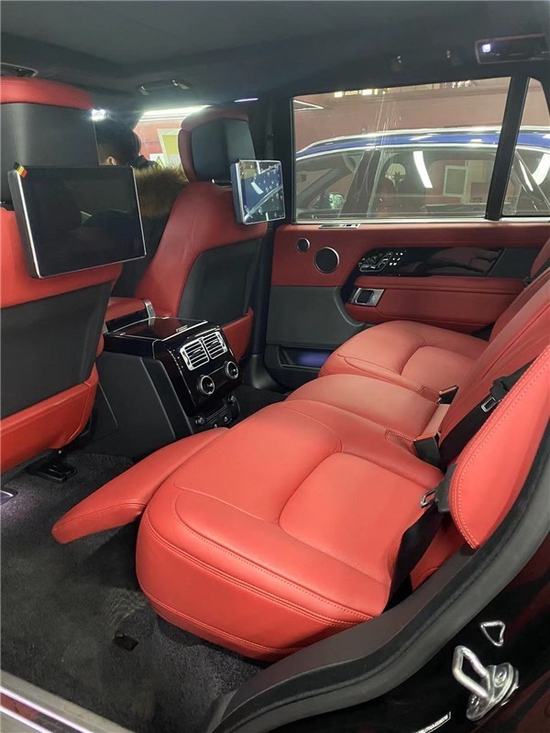 22款路虎揽胜创世加长版的前脸看起来更加方正有力。前三幅横幅的空气格栅、新设计的前大灯和保险杠使新款路虎揽胜更加强大。路虎揽胜行政人员外观简洁,棱角分明,霸气十足。