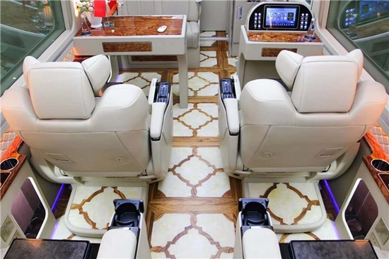 丰田 考斯特12座高端改装商务车更加注重商务旅行中办公的实用性。真皮航空座椅,电动调节装置可以让您自行调节最舒适的空间距离以及靠背以及脚托的角度,特殊的座椅构造,增加腰部的支撑,宽敞的空间让您的双腿收放自如,忘却旅途的紧迫感,体验如家般的感觉,缓解您在行车旅途中的疲劳。