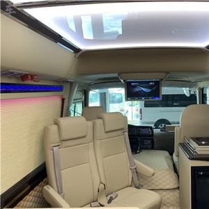 窗帘内侧可以加装LED蓝色灯光,车内立柱加装LED灯光,台阶上也可以镶嵌LED灯光,显示品牌坐标等。同时还可以在通道来两侧增加LED蓝色灯光。我们都知道,光是最能衬托氛围的选择,对车内灯光的改装可以带给我们独特的视觉感觉,营造出或温馨或者淡雅的乘车环境。