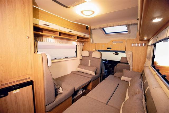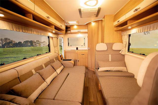 U型沙发并排乘坐3人不在话下,加对面会客区可以临时变为商务会议室,用途多变;当变床后增加车内人员休息空间的同时又让布局一目了然;旁边配有滑动盖板可放一些小物品。全车配有多组220V五孔插座及USB充电接口,为行车途中手机等小型电器冲突提供了便利。
