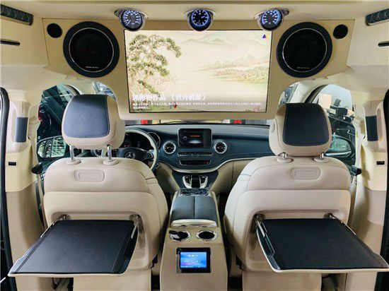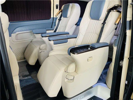 奔驰V260迈巴赫VS900二排座椅改装雷克萨斯ML300h航空座椅,180度旋转后,可与第三排对坐,形成无障碍沟通,办公、聚会一举两得。大格局尊享设计,带给您乘坐、行车双重品质体验。这样一台商务车,无论是商务办公、接待、家庭使用都是一个非常好的选择。
