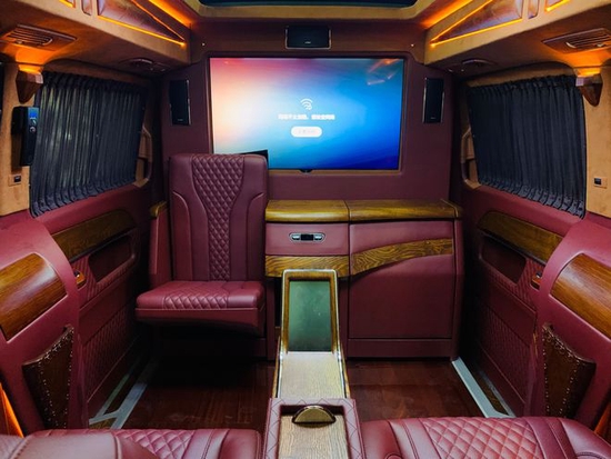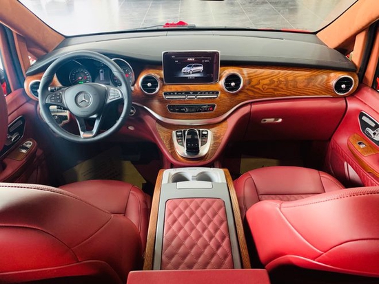福建奔驰V (配置|询价)260L四座商务车改装酒红内饰,奔驰V260L祥云版六座商务车奢华至极,奔驰V260L在设计的档次感方面比之前唯雅诺有了非常大的进步,外观也许给人感觉变化并不是特别大,那么内饰则完全不一样了,而用在一款MPV上还是让车内一下子变得高大上了很多。而且像一些细节之处的设计也向着轿车看起,比如仪表盘、方向盘和多媒体系统等,这也让它逐渐脱离之前很像是一款商用车的印象。今天给大家推荐这款是奔驰V260L改装的高顶隔断隐藏六座版本,内饰可谓是奢华至极。