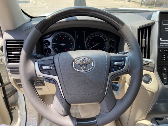 20款丰田酷路泽5700VXR主要配置:8气天窗底挂20轮KDSS 前后包围摇启气泵电尾门双氙灯LED 流水灯大灯清洗前雾灯丝绒座椅主驾电座四区空调冰箱智能卡一键启动黑钢琴漆桃木内饰防眩目后视镜10寸大屏倒影电折镜四门镀铬防擦条四门镀铬门把手镀铬后视镜行李架尾翼航踏电动调节方向盘巡航液晶仪表前2后4电眼拖钩镀铬尾喉彩条