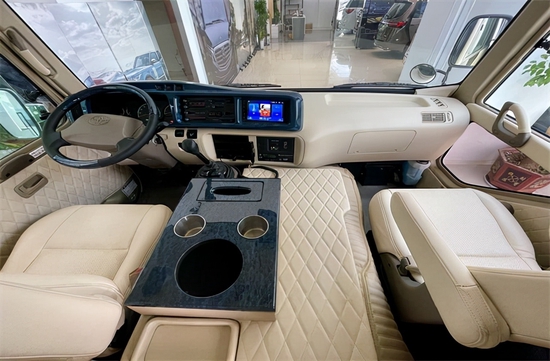 来到乘坐舱可以看到丰田考斯特11座改装商务车同样选用五张埃尔法 (配置|询价)同款座椅,并且配备有通风加热以及电动脚托等等设备。为我们的旅行提供舒适的环境,缓解旅行过程中的疲劳,而且可以多人同行,相对来说也比较低调,丰田考斯特选用了高端音响系统,按照家庭影院音响系统设计,专注于杜绝噪音和震动构筑出合适高保真音响系统的完美环境,支持多声道环绕声效果,给乘客带来视觉与听觉十分冲击的效果。