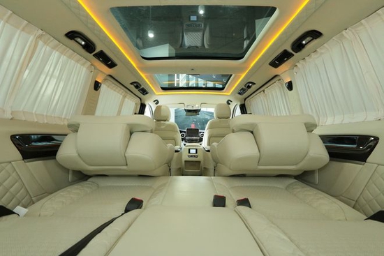 20款奔驰V260L改装商务车第二排航空座椅为带电动、加热、按摩、通风功用的航空级首长席,可沿着空中上滑轨完成一键电动式前后滑动,关于这种智能化的乘坐体验,是原厂车型笨拙的手动拖拽方式所望尘莫及的。车内的氛围灯翻开后,奔驰V260内舱变得灵活多变,气氛也可以根据主灯颜色变换而变化,主要的乘坐座椅配置的独立的按摩功用,通风加热,一体腿托,功用丰厚,乘坐温馨,是商务接待用车的代步良品。
