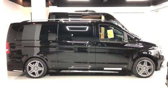 高顶奔驰V260L采用原装奔驰地盘车身尺寸为:长5370*宽1928*高2050,配备M274 2.0T发起机,最高时速为185千米/小时,最大功率为155/5500Kw/rpm,最大扭矩为350/1250-4000 Nm/rpm。