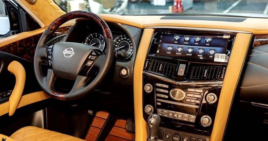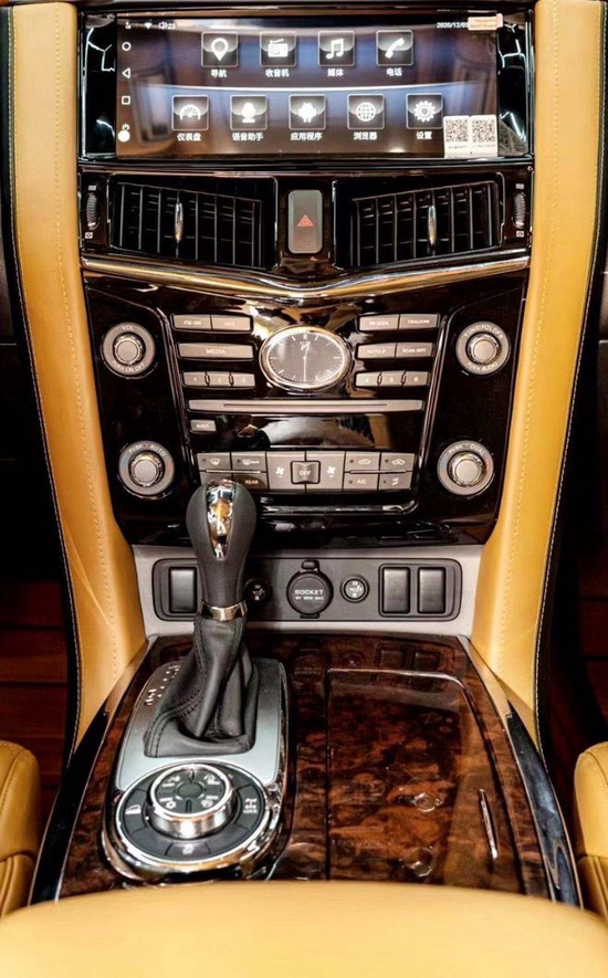 日产途乐内部整体采用了环抱式的设计,能和身体接触到的地方几乎全是皮质材料包裹,你可以说它老气不时尚,但它确实足够豪华,带来具有高贵感的内饰氛围。同时,该车中控台及方向盘运用了大量的皮质包裹,在质感的营造上也较为出色。此外,这款车在换挡杆周围等区域融入了木纹装饰,这也相应提升了其内饰整体的豪华感。全新途乐采取了豪华轿车用的四幅风向盘打算,粗细对比合手再加上真皮加实木的用料,手握感触感染极佳。