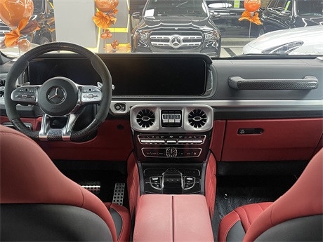 奔驰G63 (配置|询价) AMG改款的内饰也有了全新的改变,最显现的变化在于采用了奔驰今年最新采用的设计理念,全液晶仪表盘和中控大屏一体的双12.3寸连屏格外引人瞩目,信息显示更加全面,无论视觉效果到操控体验都无可挑剔,奔驰G63 AMG科技时尚感。另外奔驰G系列标志性的三把锁的也不能忽视,位于两个涡轮状空调出风口之间,奔驰G63 AMG纵横越野界的利器。