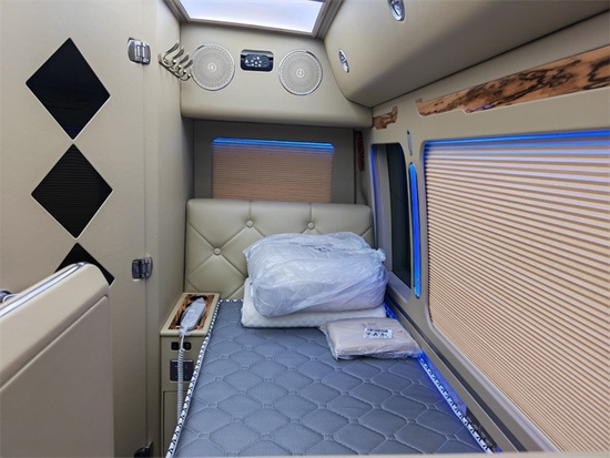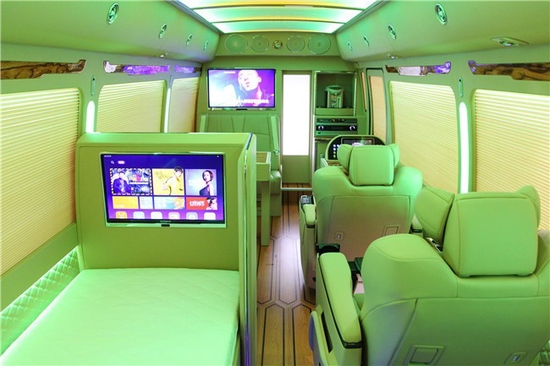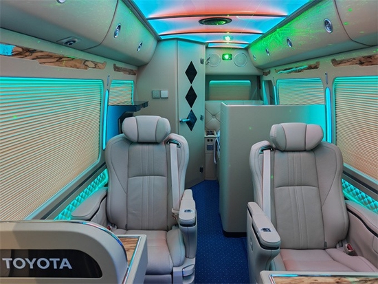 丰田考斯特专为VIP尊贵版升级的驾驶舱隔板,将驾驶室与嘉宾空间隔开,不仅能够保证驾驶者专注行车,更能为在移动中轻松营造出一个独立,静宜的专属移动办公间,丰田考斯特改装车型如VIP接待车、医疗车、露营车、通讯指挥车、消防指挥车、环境监测车等已经占据柯斯达 (配置|询价)销量的近一半。丰田考斯特改装商务车内饰的改装上,还有许多不同的细节的设计。对于旅行来说,乘车过程中难免会有许多烦闷之时,所以乘车过程中的娱乐活动可以帮助我们很好的打发时间,有一个愉悦的体验,丰田考斯特选用了高端音响系统,按照家庭影院音响系统设计,专注于杜绝噪音和消除震动构筑出合适高保真音响系统的完美环境,支持多声道环绕声效果,给乘客带来视觉与听觉十分冲击的效果