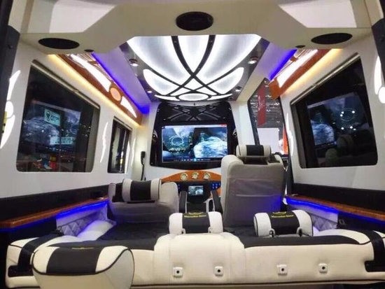 GMC房车改装翻新主要以豪华内饰和绚丽的吊顶灯光还有豪华的商务座椅为主,内饰全部真皮软包,配置隔断升降电视,吧台、多媒体系统,翻新的GMC房车可以保留车内原有的一些配置然后改装翻新一部分来达到改装翻新成本低的效果