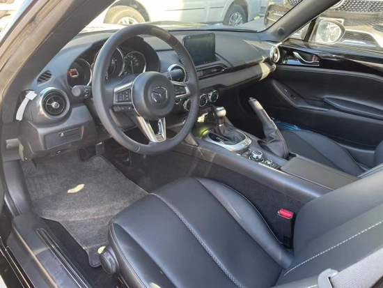 马自达mx5内饰装配了一台8英寸悬浮式液晶显示屏幕,配有三辐式多功能方向盘,多处加装了镀铬饰条。采用对称式设计,配有悬浮式液晶中控屏、三辐式多功能方向盘、一键启动等配置。配色选用了纯黑方案。此外,方向盘、空调出风口、挡把等多处加入了镀铬装饰。
