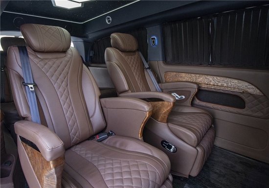 奔驰V级中排配备了两张采用Nappa打孔真皮包覆的CEO级航空电动按摩座椅,全钣金金属骨架给宾客客带来极度贴合的乘坐感受。加热、通风、气动按摩、头枕、双节腿托、水平旋转、前后移动、一键平放等高端调节功能更是能依靠扶手右侧的快捷按钮轻松操控,集“奢华、舒适、科技”于一体的设计将梅赛德斯奔驰“所享,超乎所想”的工艺理念诠释得淋漓尽致,受到了诸多商务精英的追捧尊崇。