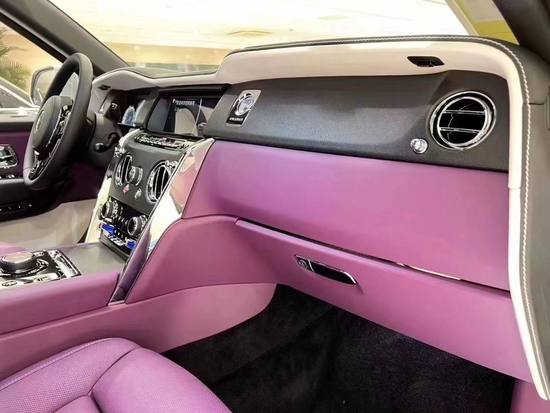 劳斯莱斯库里南 (配置|询价)内饰延续了全新幻影 (配置|询价)的设计风格,整体用料依旧一如既往的奢华高贵,中控采用大面积实木打造,配合方向盘上的实木点缀,既复古又豪华。中控屏幕尺寸为10.2英寸的屏幕,轻触车门把手上按键就可以电动关闭,四座版的后排控制台与前部是断开的在狭窄环境停车后排乘客可以选择任意一侧下车。