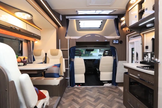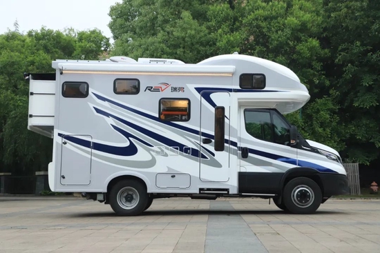 在车辆的外观配置方面,搭载有进口风感自动收回电动遮阳棚、电动驻车衡器、外置抽拉式燃气灶、后侧大尺寸贯通式行李舱、进口重力/压力加水口、外置可插接水龙头出水口、交流、直流外接充电口等设施。