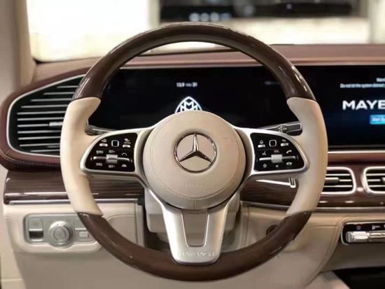 全新21款奔驰迈巴赫GLS600方向盘、中控台等处都使用了实木、真皮等材质,触感、观感都无可挑剔。同时,新车还配备了该车型专属的64色氛围灯、名为“NO.8 mood”香氛系统和Burmester品牌高端3D环绕音响系统。