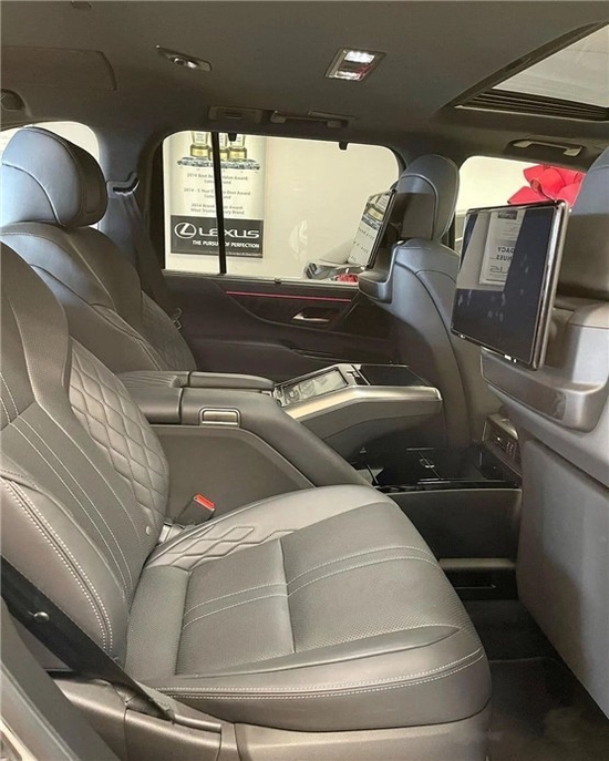 22款雷克萨斯LX600也首次提供了四座布局可选,为了使后排拥有更加舒适的乘坐感受,可讲副驾驶座椅向前调节,座椅倾斜角度最大可达48度。此外,在后座乘客拥有一个1100毫米的腿部空间之外,还拥有一个可伸缩的脚踏板,提供一个更加从容的坐姿。