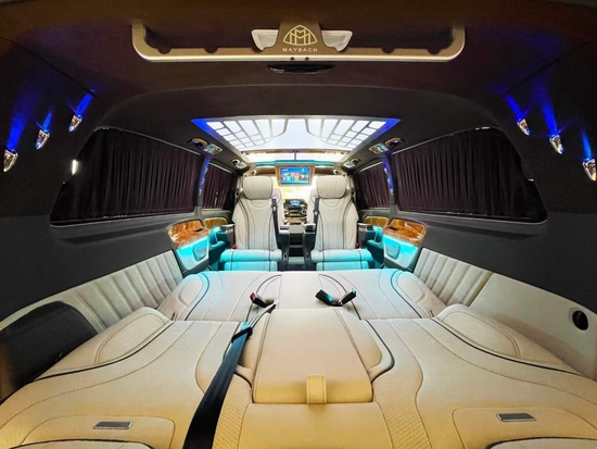 2022款奔驰威霆改装商务车,低顶迈巴赫版奔驰威霆商务车是一款居家与商务兼用的豪华商务车,他不但有豪华的外观,还有奢华大气的内饰及个性化定制的细节。虽然改装后的奔驰威霆任是一款几十万的MPV,但是它可以和上百万的MPV相媲美。大气的迈巴赫前脸及大包围,和专属定制的LOGO搭配车身大气的镀铬装饰件,从而彰显出这款奔驰威霆改装的与众不同,及车主的尊贵身份。改装后奔驰威霆的前置大灯也是LED大灯,犀利的设计与前脸搭配,让原本的奔驰威霆更加霸气上档次。
