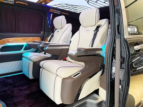 2022款奔驰威霆座椅为2+2+3陈列,也是商务车最为流行的座椅布局,改装后的奔驰威霆第二排航空座椅,打孔真皮处置更透气,座椅透风、推拿赐与您更温馨的乘坐感触,更有360度扭转功用;2022款奔驰威霆商务车无论是家庭出游照顾孩子、陪家人谈天,亦或是商务洽谈,都能让您随心所欲。可以说,只要你款意,你就可以在这张座椅上找到任何你喜欢的姿态。 在奔驰威霆改装后的车内顶部也全部采用顶级的acantaral翻皮绒进行软包,这种源于跑车中的奢华内饰材料,将超豪华跑车的奢侈与豪华延续至每一个人的生活。而在改装奔驰威霆的驾驶室内,这款车也大量采用了真皮来包覆整个驾驶室,另外我们在驾驶舱内的两个座椅中间搭配上车载冰箱,在酷暑的夏季里可以随时喝上冰凉的冷饮。