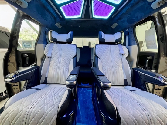 第三排是可以放倒180度的沙发床,周末休闲或者出游,躺在舒适的沙发上也是一种很完美的体验。整车还配有15.6寸的吸顶电视,尽显尊贵的大理石地板等等。总之,走进这辆GL8中,除了酷炫的氛围外,您还可以感受到内饰改装后的豪华感。