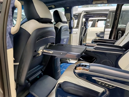 二排是顶级航空座椅,加热、通风、按摩、电动腿托等功能也是一应俱全的。顶棚采用了上等的珐琅皮绒进行包覆,手感极其舒适。全车采用了大理石纹地板,极其的奢华。
