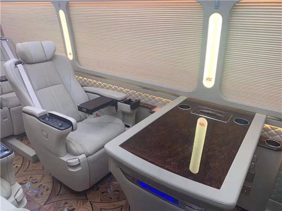 从灯光的设置上就有很多种方式,我们可以在车顶内加装豪华的彩色灯,可以有橙色蓝色紫色等不同的灯光选择,营造车内氛围。窗帘内侧可以加装LED蓝色灯光,车内立柱加装LED灯光,台阶上也可以镶嵌LED灯光,显示品牌坐标等。同时还可以在通道来两侧增加LED蓝色灯光。我们都知道,光是最能衬托氛围的选择,对车内灯光的改装可以带给我们独特的视觉感觉,营造出或温馨或者淡雅的乘车环境。