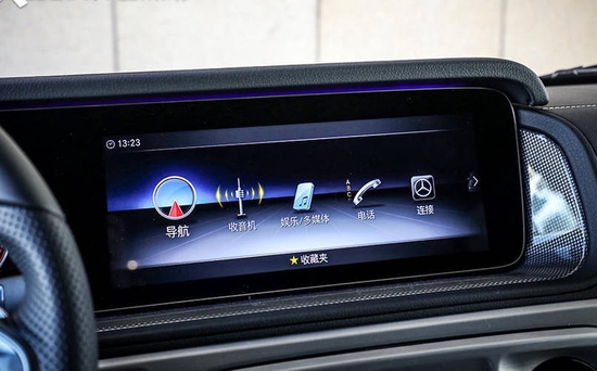 12.3英寸中央液晶屏并未搭载最新的奔驰MBUX人机交互系统,还在沿用Command系统,不过系统支持CarPlay互联功能。同时,通过内置的4G网卡,还可实现App车辆信息远程查看功能。